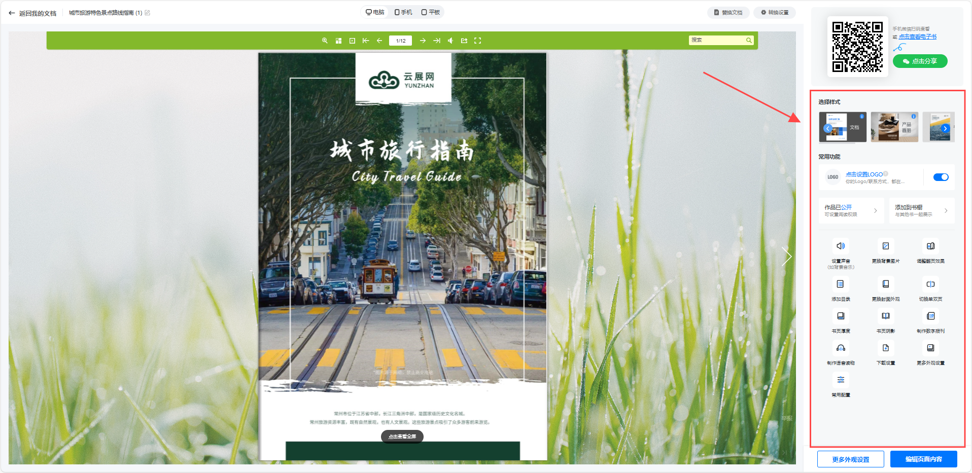 也可點擊【更多外觀設(shè)置】編輯電子書,或【編輯頁面內(nèi)容】設(shè)置電子書的外觀樣式。