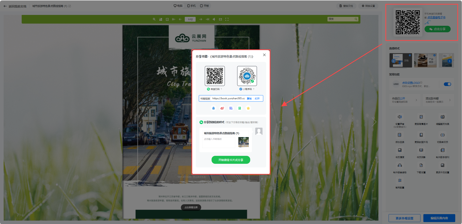 點擊【保存】按鈕,保存后的電子書,可以點擊【分享】發(fā)送到朋友圈或通過鏈接/二維碼分享到微信/QQ好友。