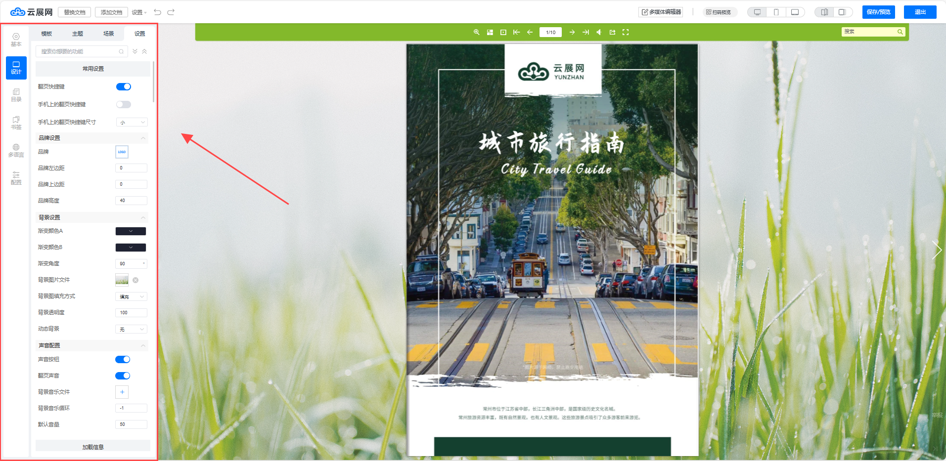 你也可以在右側(cè)設(shè)置電子書的樣式、LOGO、閱讀權(quán)限、背景音樂、背景圖片等設(shè)置,或是添加目錄、更改書頁厚度以及書頁陰影等外觀設(shè)置。