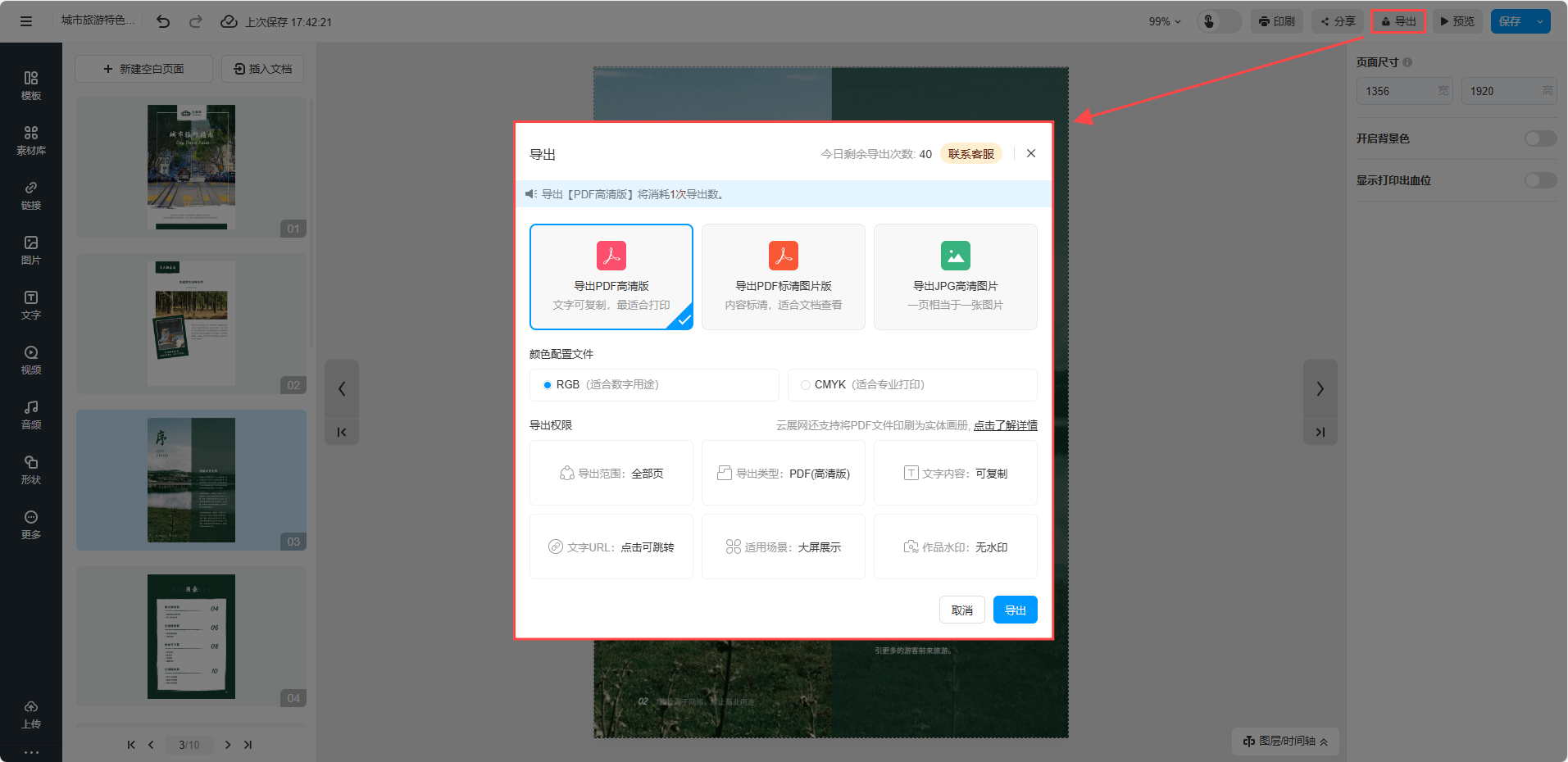 你也可以點擊【導出】,將電子書的PDF/圖片保存至本地。