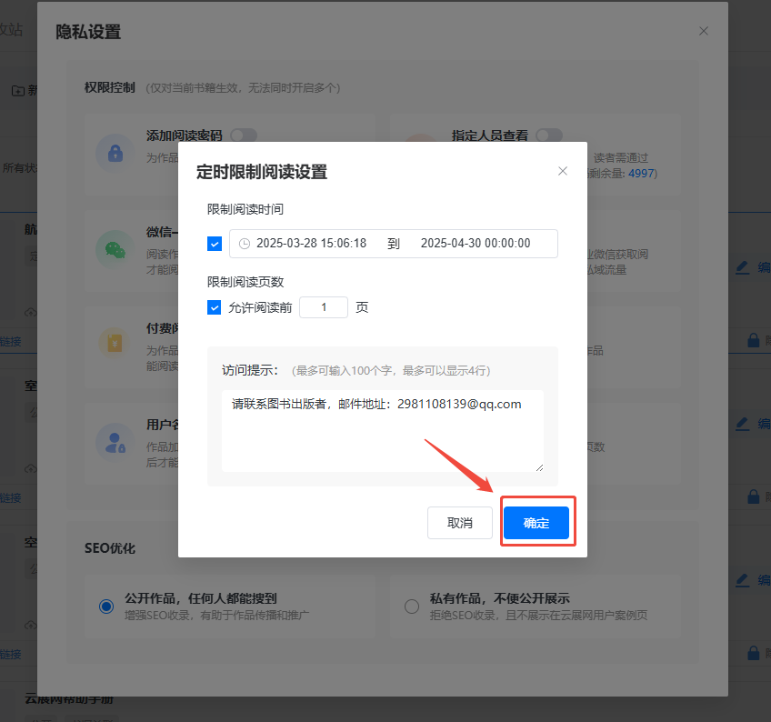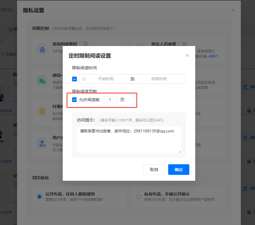 如果想要在限定的時(shí)間段內(nèi)讀者可以試看,可以設(shè)置允許閱讀前幾頁。