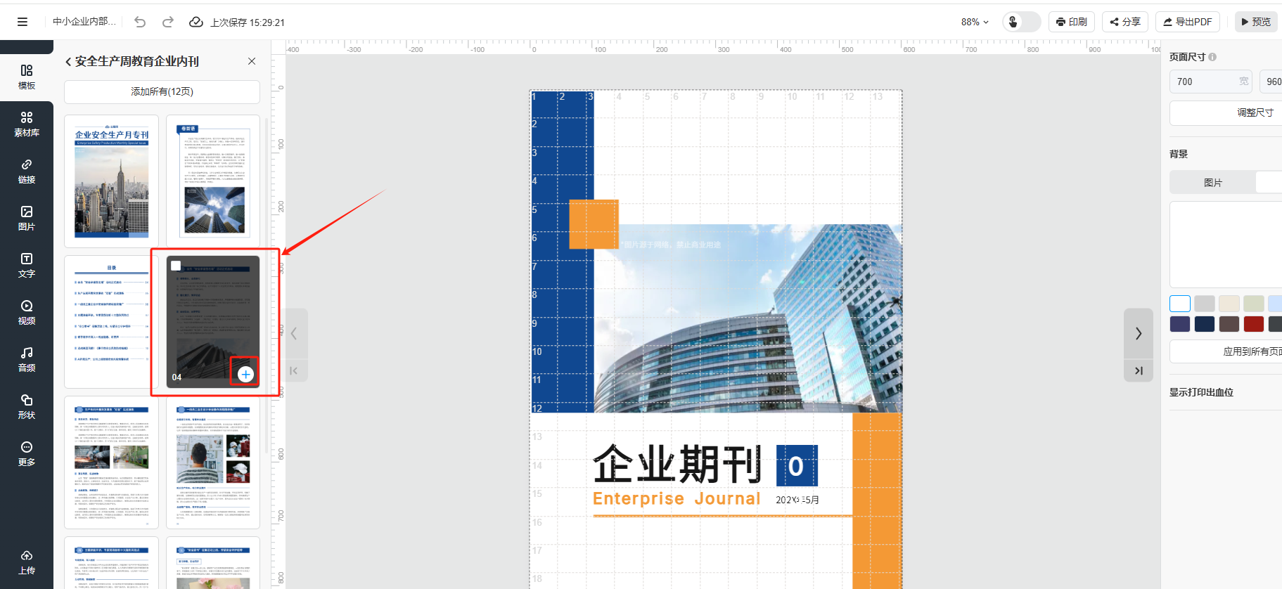 (2)選擇一款合適的模板點擊打開,挑選出想要的某一頁,點擊【+】號