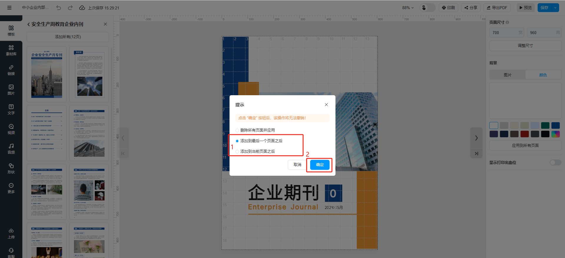 (3)選擇頁面插入的位置,點擊【確定】就可以使用編輯了