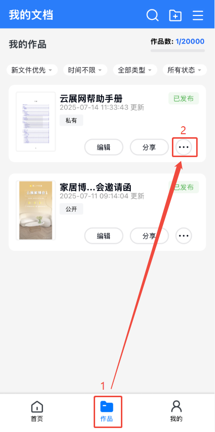 點(diǎn)擊【作品】,點(diǎn)擊對應(yīng)電子書右邊的三個點(diǎn),然后根據(jù)需要點(diǎn)擊【定時啟用】或者【定時停用】,打開界面。