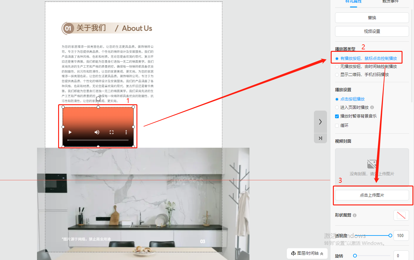 注意:只有視頻類型為【有播放按鈕,鼠標(biāo)點(diǎn)擊控制播放】,才可設(shè)置視頻封面。