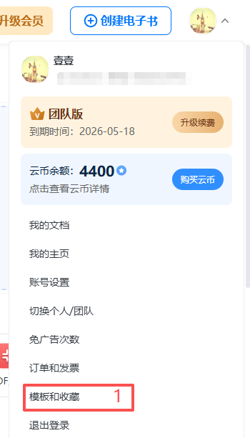 點(diǎn)擊右上角的頭像,點(diǎn)擊【模板和收藏】。