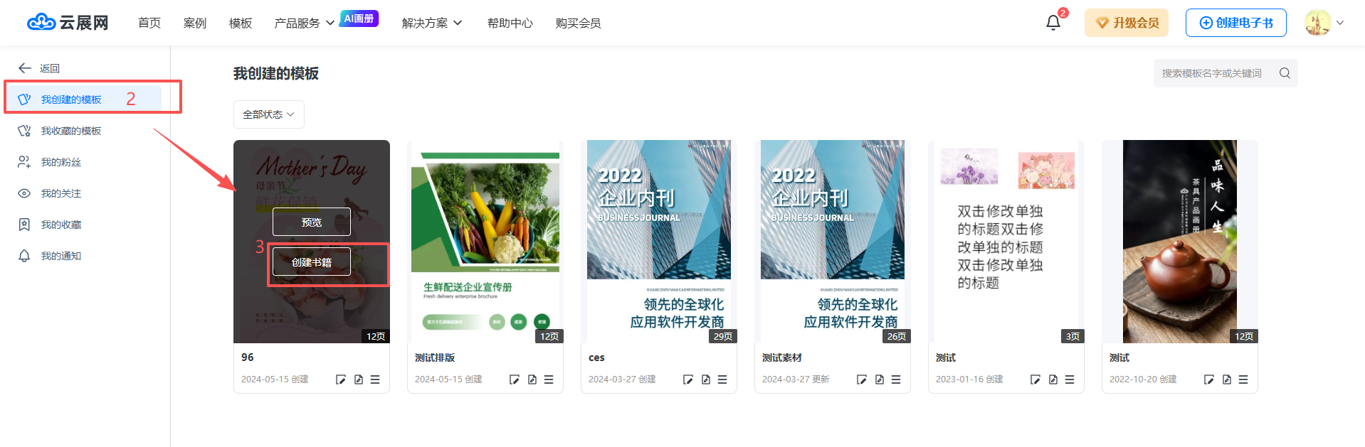 點(diǎn)擊【我創(chuàng)建的模板】,選擇需要套用的模板,點(diǎn)擊【創(chuàng)建書(shū)籍】。