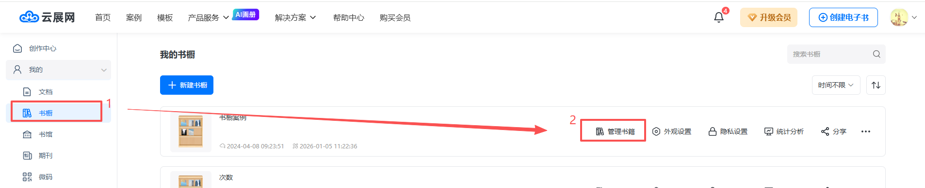 (1)點(diǎn)擊【書櫥】找到對(duì)應(yīng)書櫥,點(diǎn)擊【管理書櫥】,進(jìn)入管理書櫥界面。