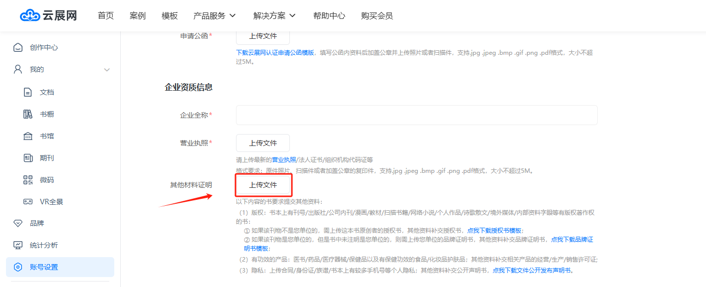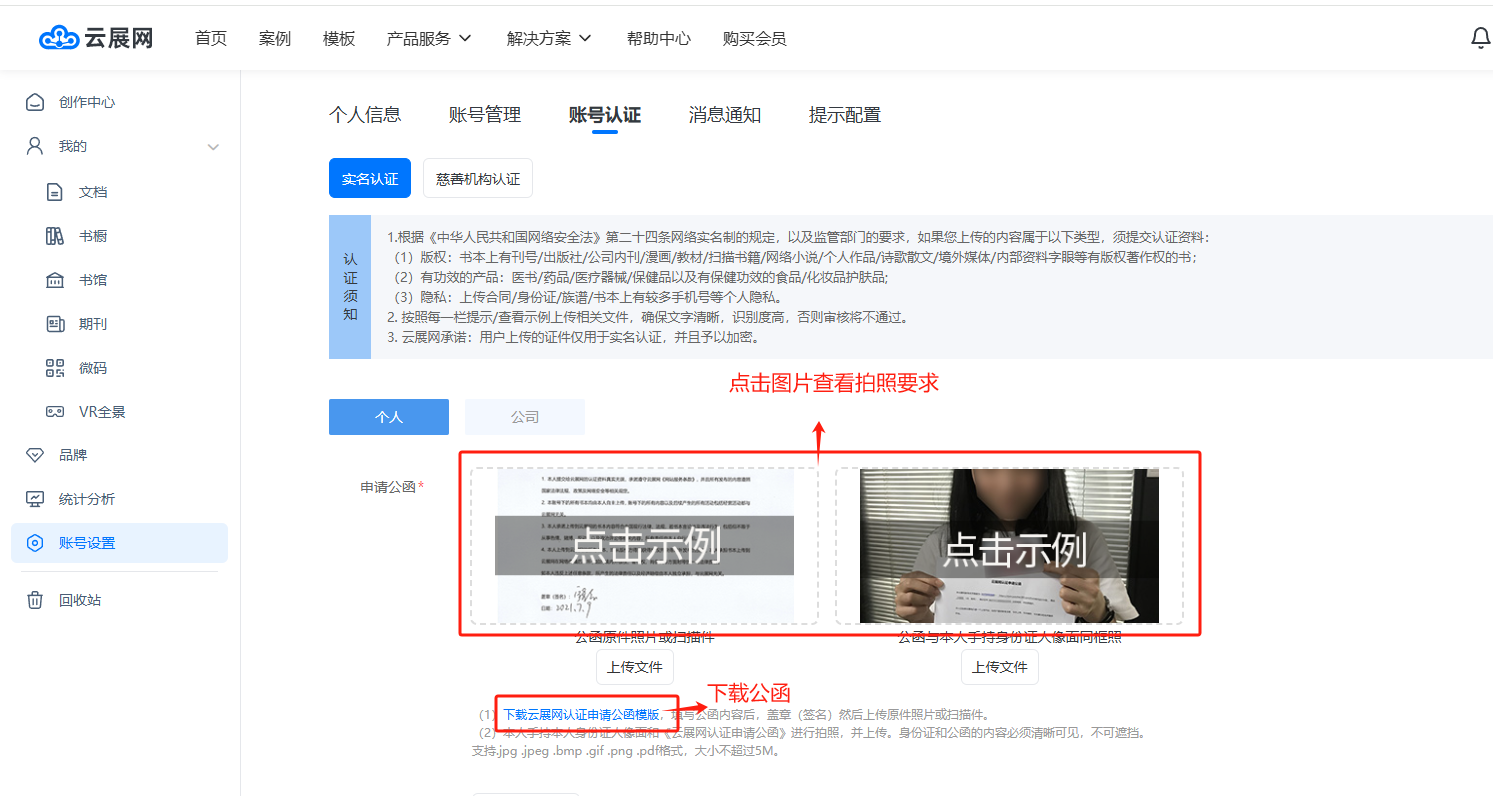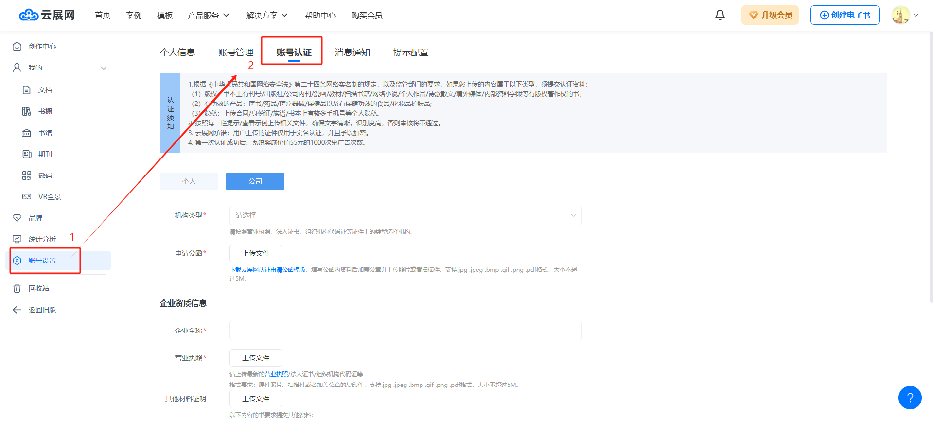 電腦登錄云展網(wǎng)網(wǎng)站,登錄您的賬號,點擊【賬號設置】,點擊【賬號認證】打開賬號認證界面