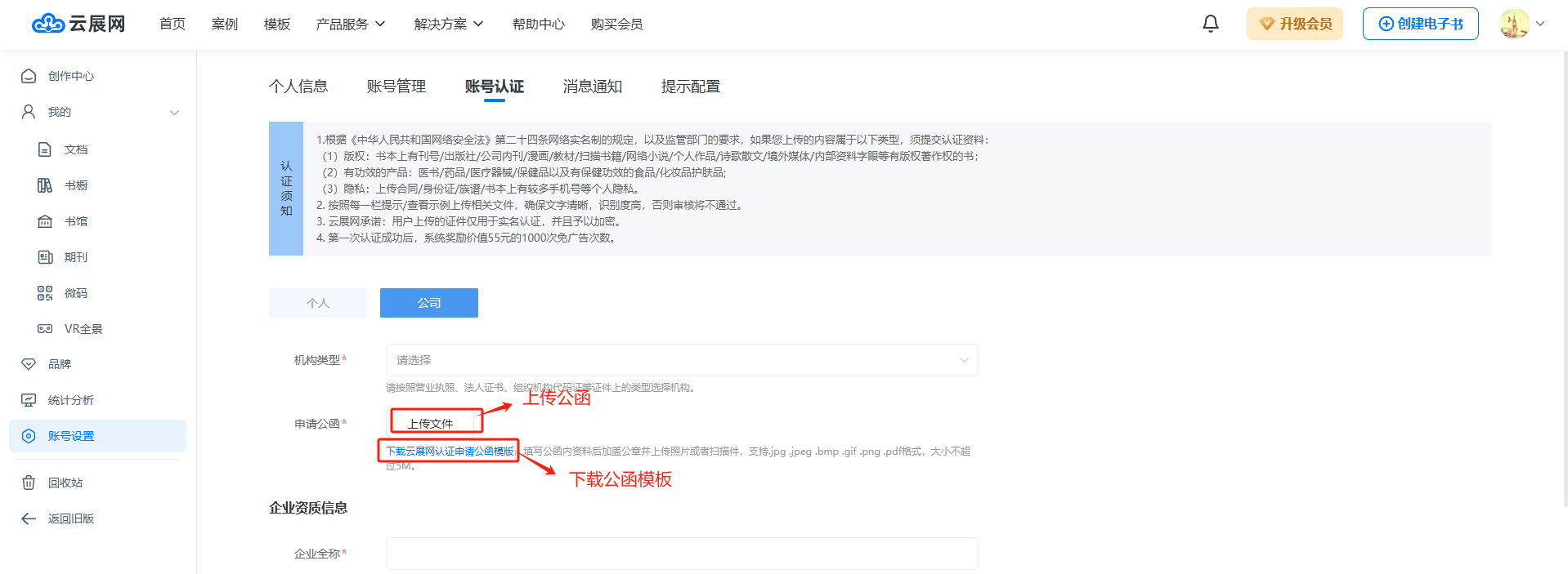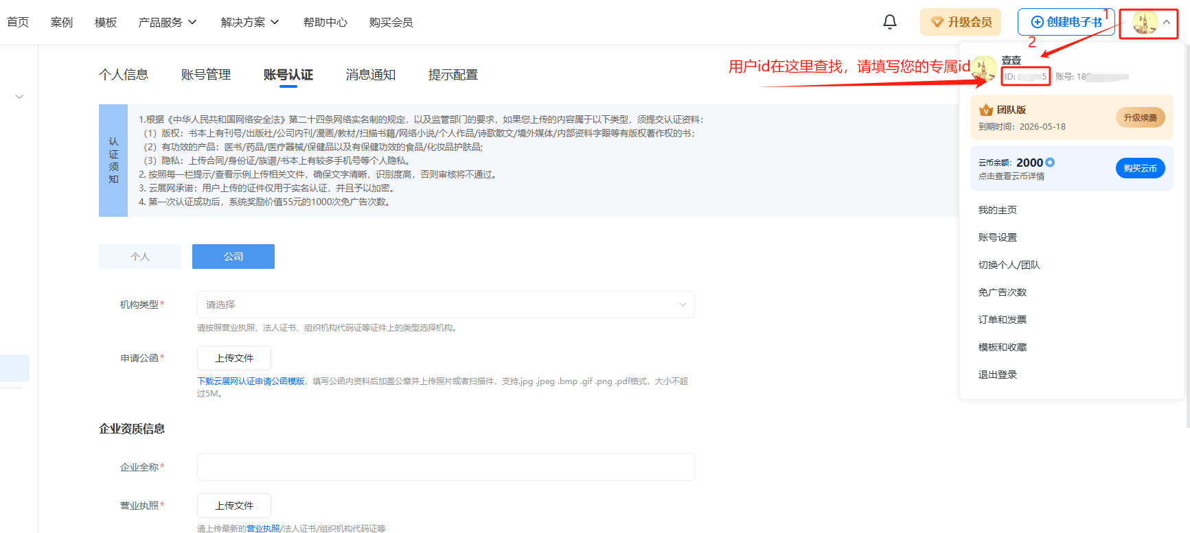 下載公司公函模板,填寫公函里邊的用戶ID,單位名稱等,蓋公章以后上傳掃描件;