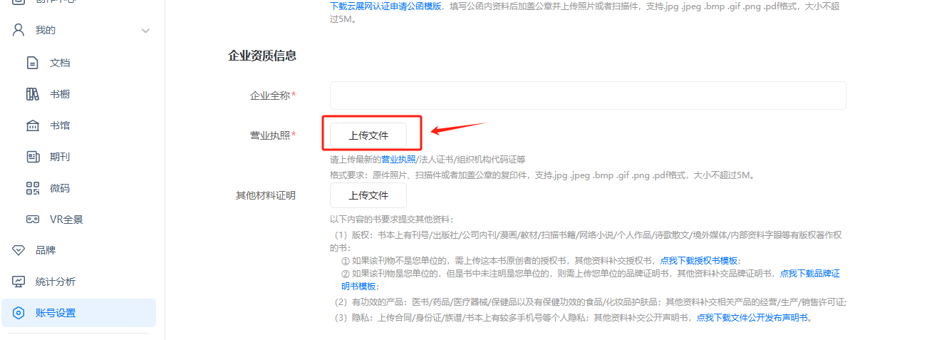 2) 上傳營業(yè)執(zhí)照/組織機構代碼證/法人證書等