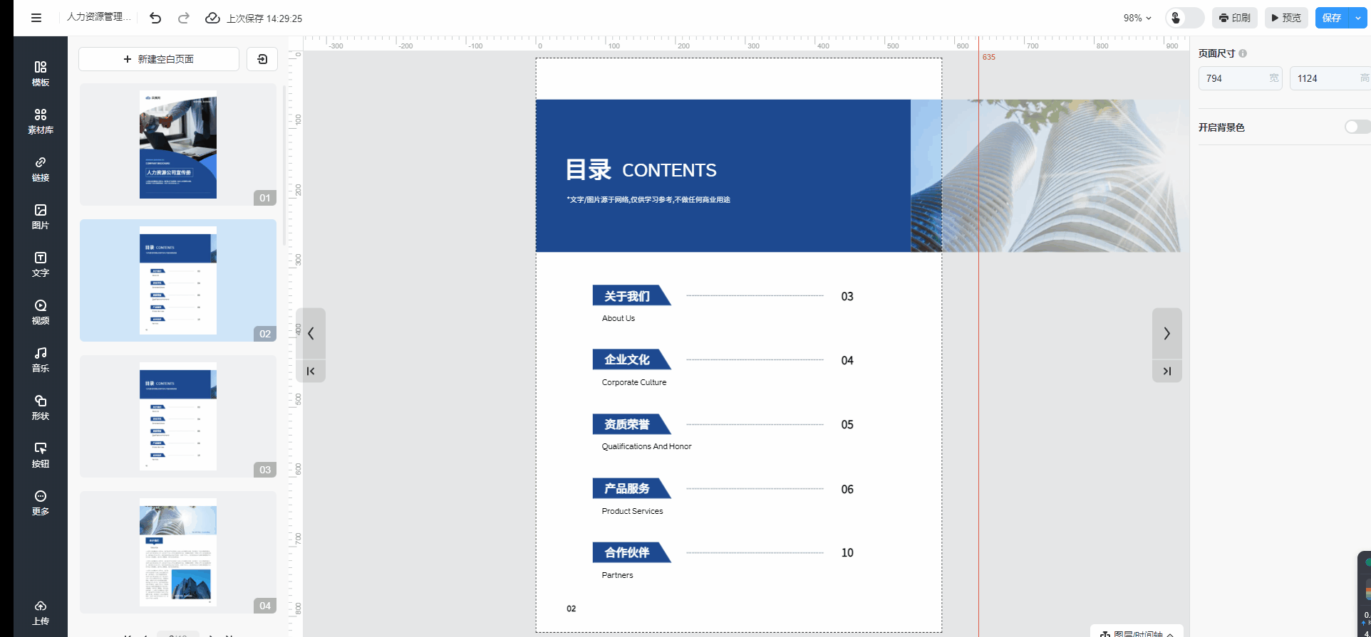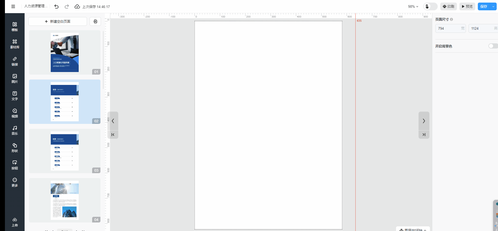 如果你需要更多的頁面去編輯設(shè)計(jì),你可以新建空白頁面。