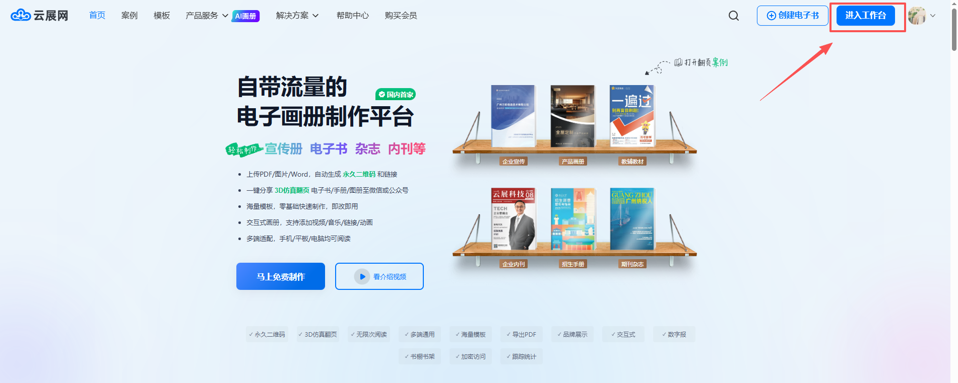 登錄賬號(hào)后,點(diǎn)擊右上角的【進(jìn)入工作臺(tái)】。