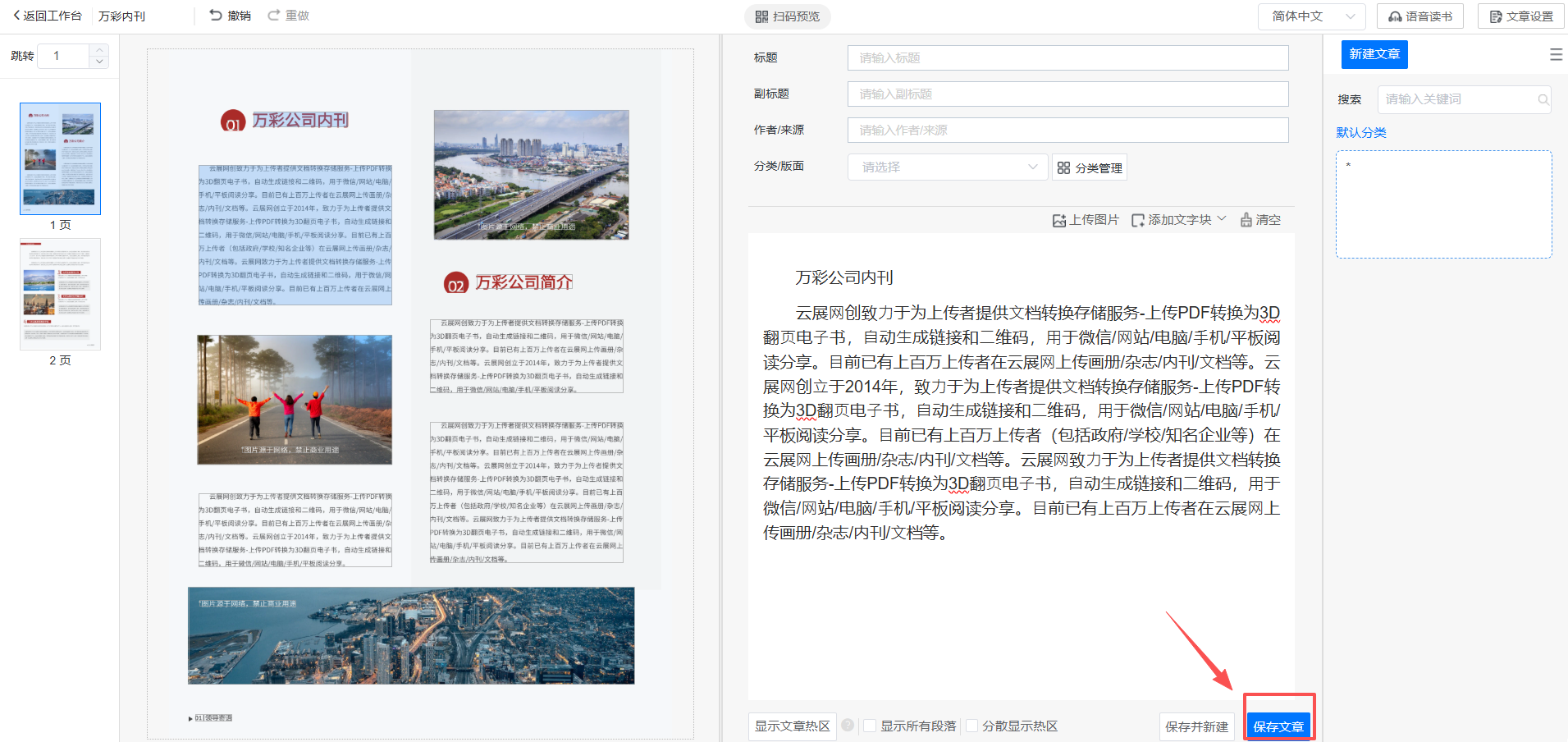 提取文章,就是把書本上每篇文章單獨(dú)提取出來作為一個新的頁面展示,可以直接分享該篇文章,并且讀者看著會更清晰。有助于SEO搜索引擎的收錄。特別適用于期刊,報(bào)刊這種文字篇幅比較多的書本。