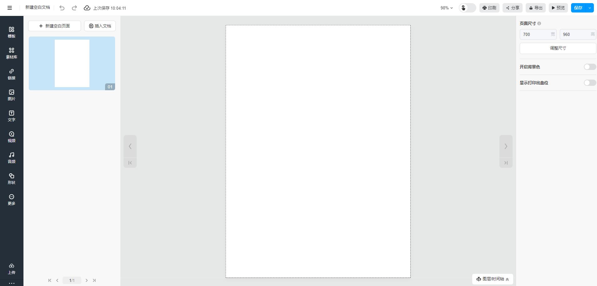 創(chuàng)建電子書(shū)空白文檔完成后,自動(dòng)跳轉(zhuǎn)內(nèi)容編輯頁(yè)面(多媒體編輯界面)。在這里,你可以通過(guò)添加圖片、文字等一系列編輯操作進(jìn)行電子書(shū)排版編輯。