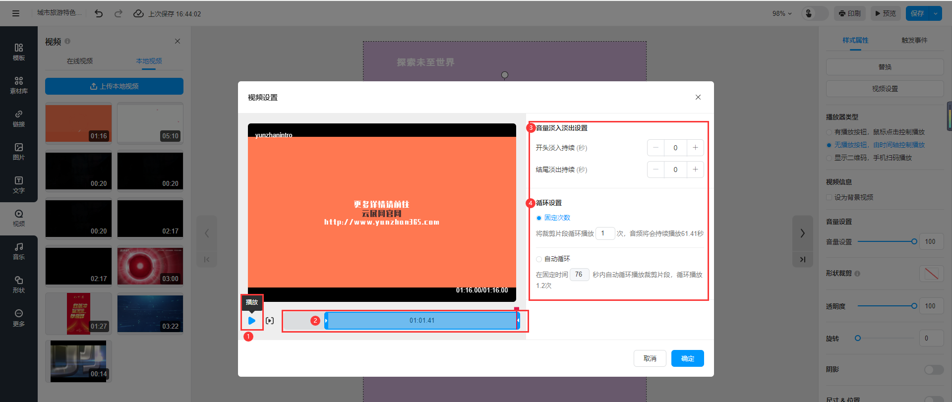 ③音量淡入淡出設(shè)置:視頻的音樂淡入淡出持續(xù)時間