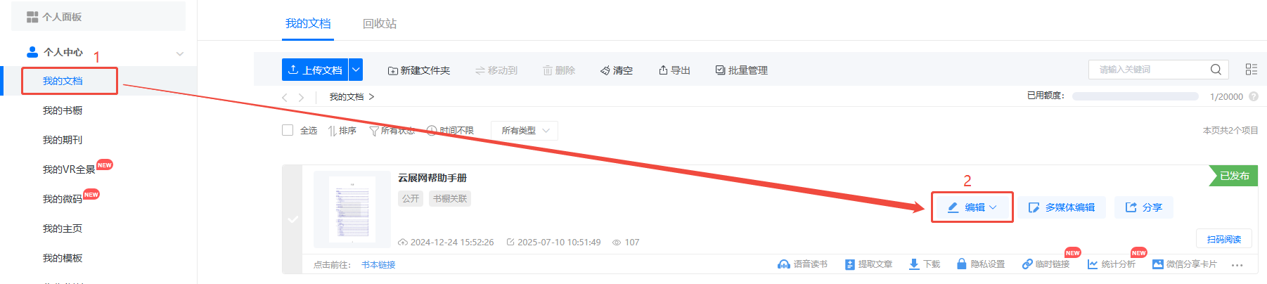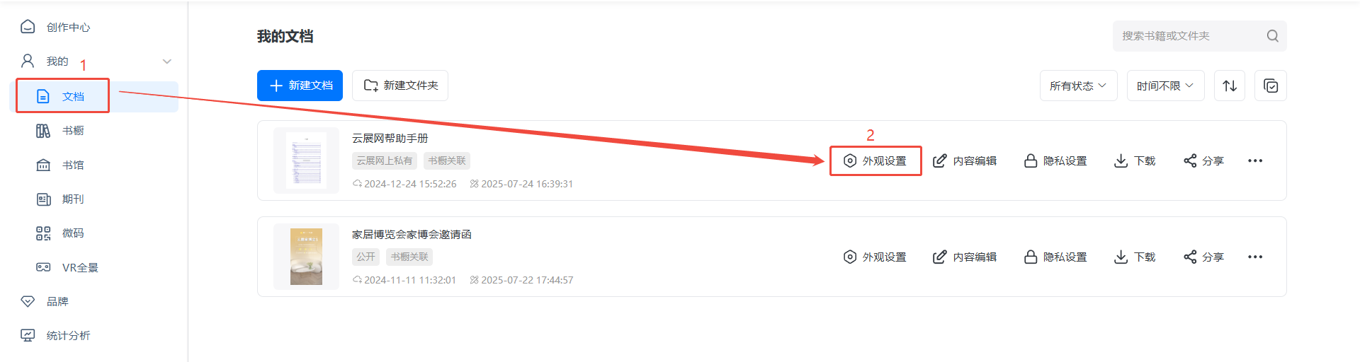 點(diǎn)擊【我的文檔】/【文檔】,點(diǎn)擊對(duì)應(yīng)書本的【編輯】/【外觀設(shè)置】。
