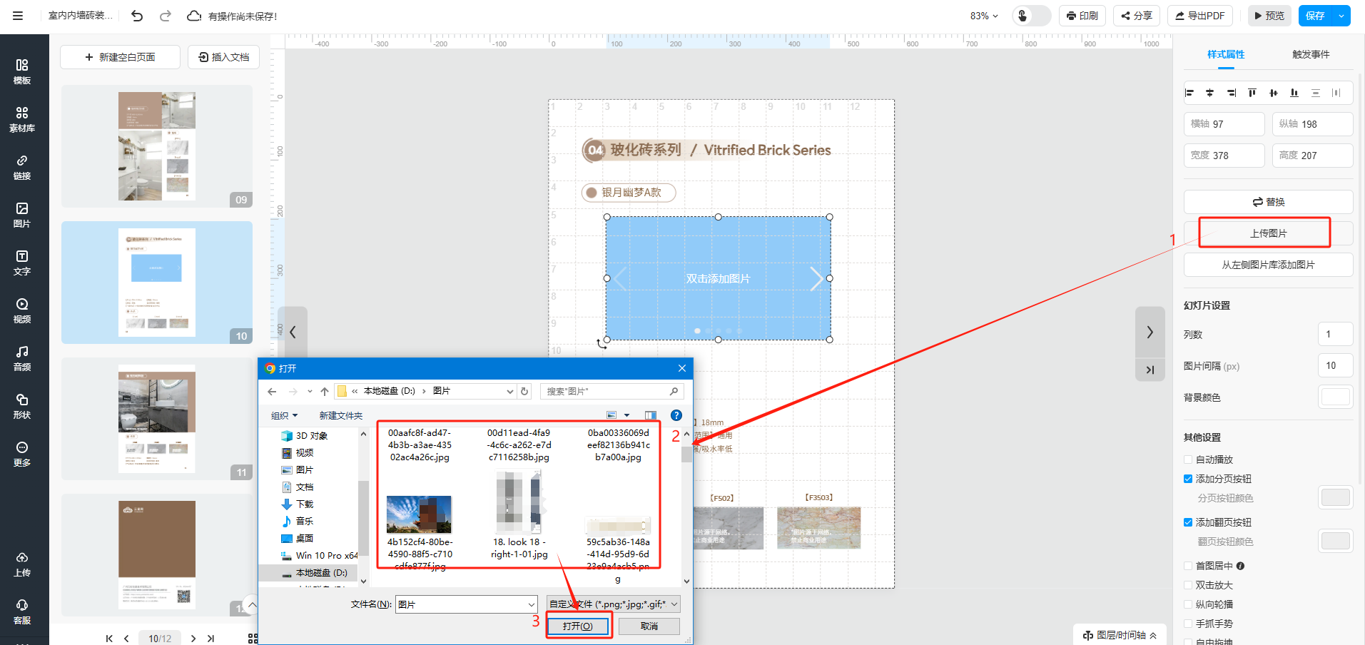 當(dāng)有很多圖片需要展示到電子書上時,可以使用云展網(wǎng)上的幻燈片功能實(shí)現(xiàn),將圖片組合起來以輪播的形式展示,動態(tài)的幻燈片界面可以使我們的電子書更加的出色。
