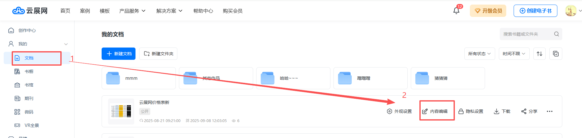 1、在【文檔】頁面,點擊【內容編輯】打開。