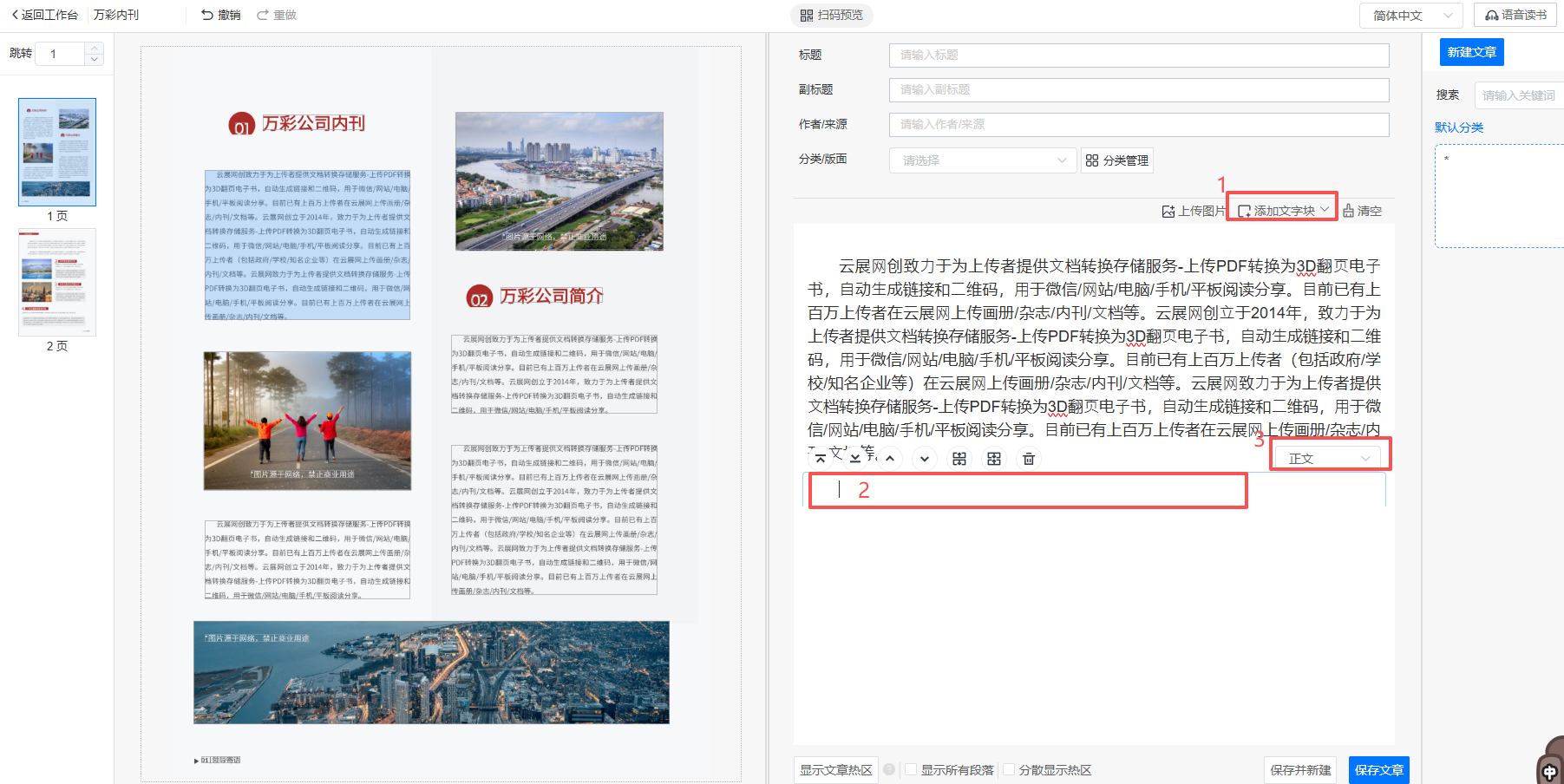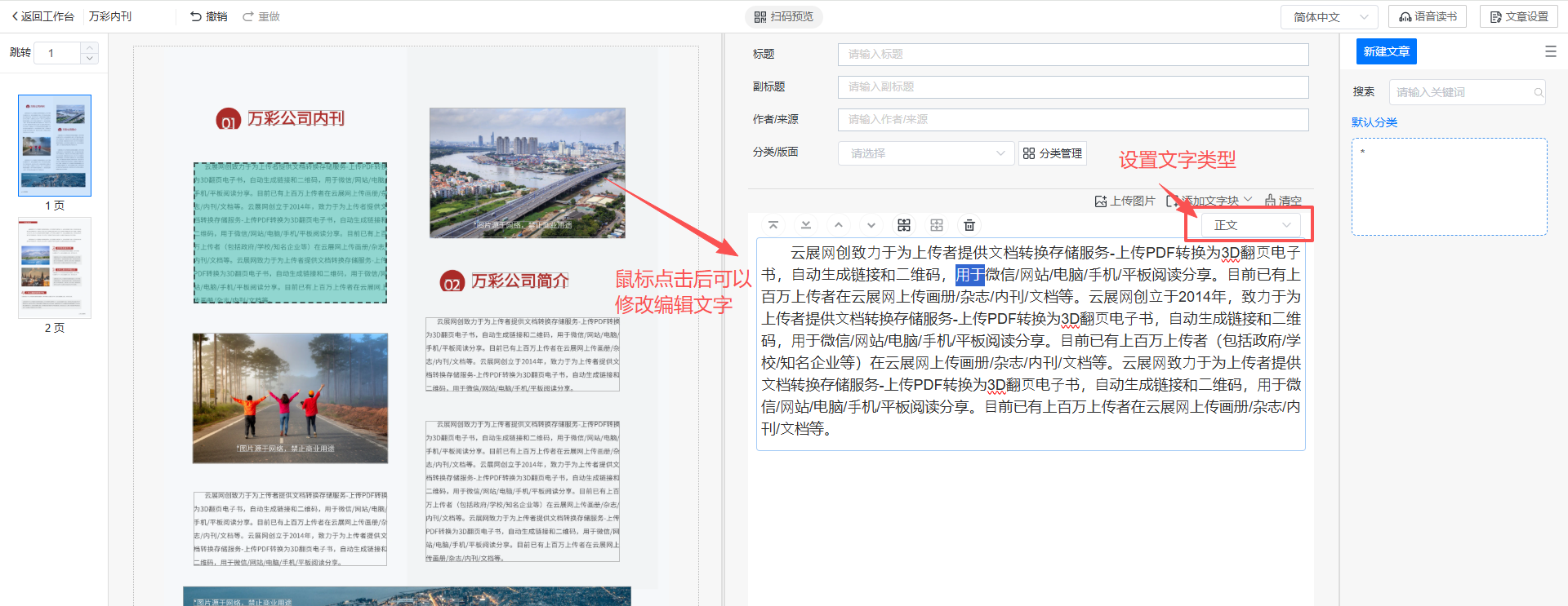鼠標(biāo)點(diǎn)擊右邊文章中已提取的文字塊,就可以開(kāi)始編輯修改文字了,修改完再選擇合適的文字類(lèi)型,如正文、標(biāo)題等