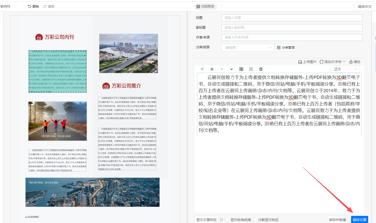 文章編輯完成后,點(diǎn)擊右下角【保存文章】保存。