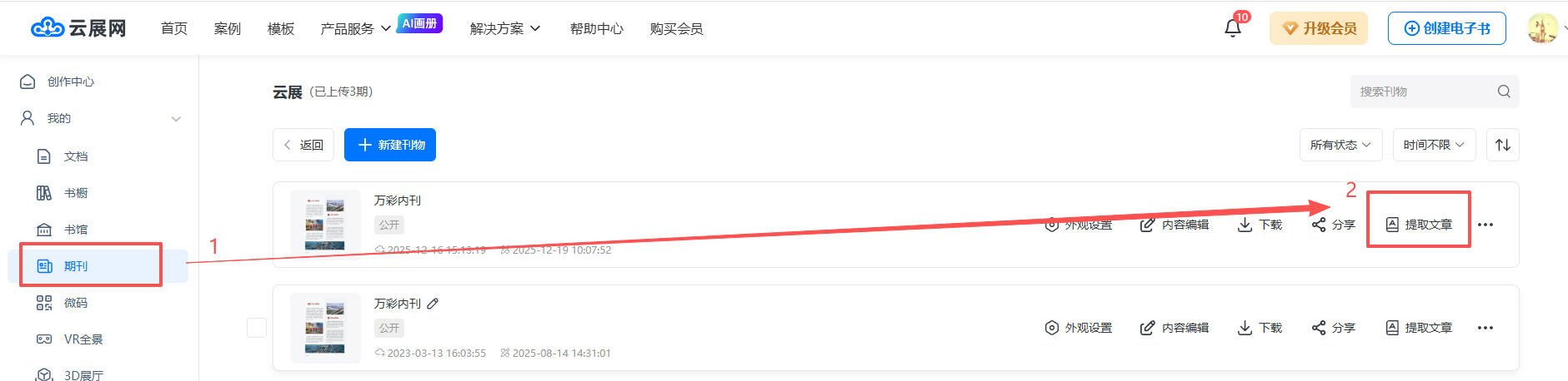 文章添加圖片 一、功能介紹 在文章中添加圖片,即在提取文章內(nèi)容時,可適當插入圖片,讓整個版面更生動形象,提升讀者的閱讀體驗。此功能僅高級版及以上會員支持。 二、操作步驟 1、打開文章編輯界面 在【期刊】頁面,找到對應(yīng)的書籍,點擊【提取文章】打開。 2、在文章內(nèi)容里面插入圖片 1)在選擇文字/圖片頁面,點擊圖片插入到文章里 2)插入本地圖片 點擊【上傳圖片】按鈕,瀏覽本地文件,選擇圖片插入 3、保存文章 編輯好文章內(nèi)容后,點擊【保存文章】保存。
