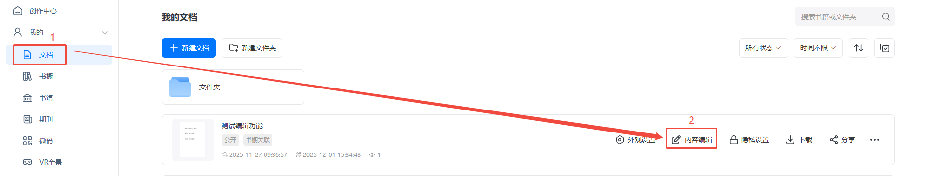 點(diǎn)進(jìn)【文檔】,選擇對(duì)應(yīng)電子書,點(diǎn)擊【內(nèi)容編輯】。