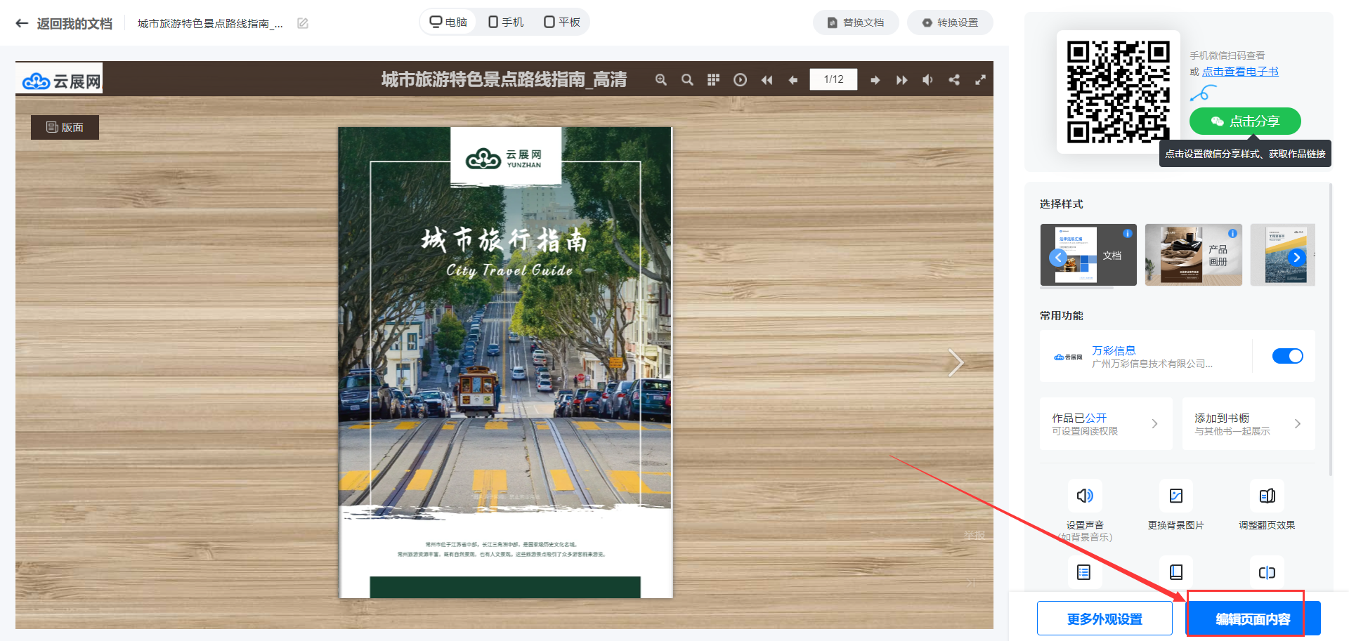 當你上傳文檔,轉(zhuǎn)換生成電子書后,點擊【編輯頁面內(nèi)容】也可以在這里打開多媒體編輯器。