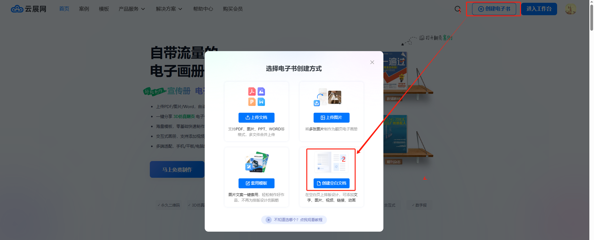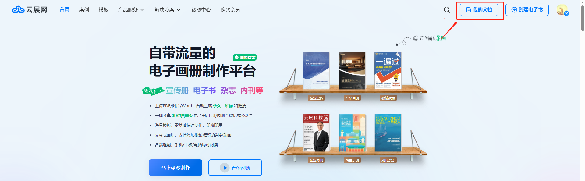 你可以從云展網(wǎng)首頁點擊【我的文檔】/【進入工作臺】界面
