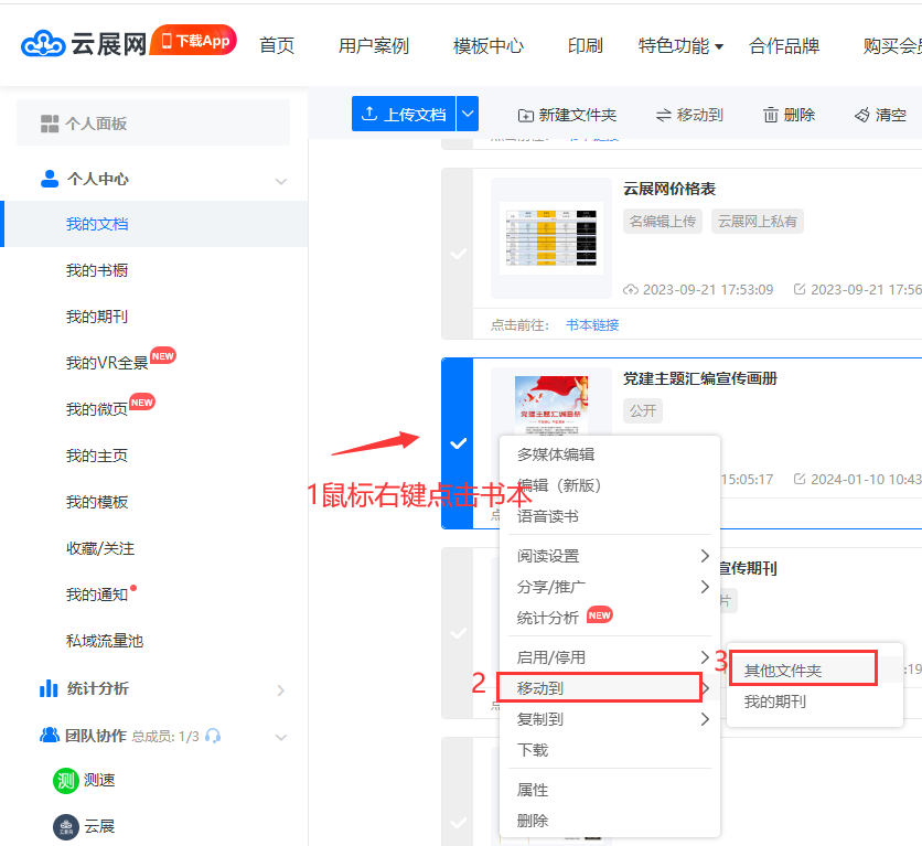 鼠標(biāo)右鍵點(diǎn)擊書本–選擇【移動到】【其他文件】–選中對應(yīng)的文件夾
