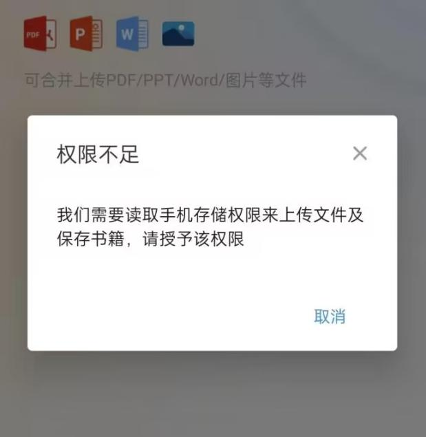 使用云展網(wǎng)app上傳文件時(shí)提示權(quán)限不足: