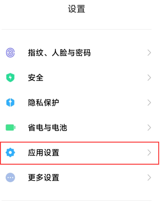 1.打開(kāi)手機(jī)設(shè)置,點(diǎn)擊“應(yīng)用設(shè)置”