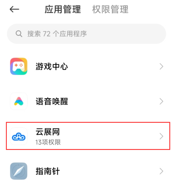 3、點(diǎn)擊“應(yīng)用權(quán)限管理”