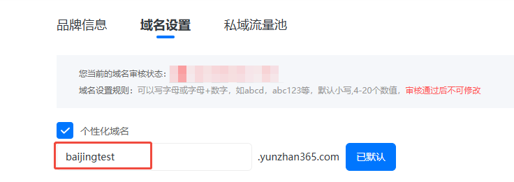 例如我把個性化域名設置為baijingtest:
