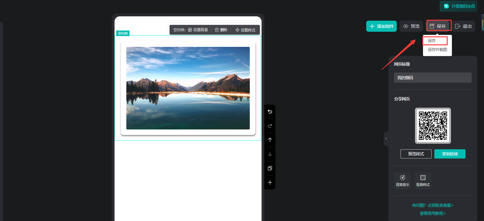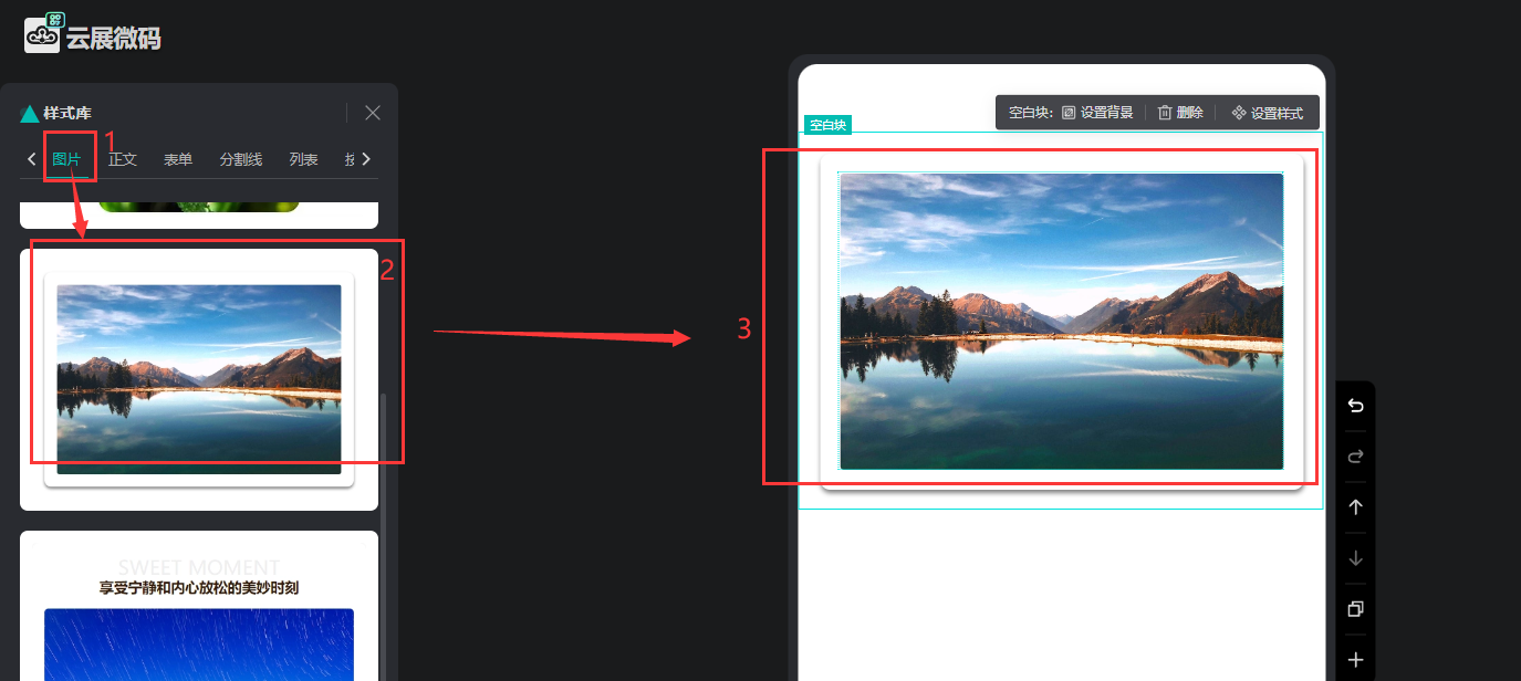點(diǎn)擊【樣式庫(kù)】的【圖片】,選擇一個(gè)樣式,便會(huì)出現(xiàn)在微碼上。