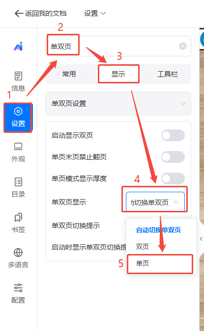 點(diǎn)擊【設(shè)置】,上方搜索欄搜索【單雙頁(yè)】,【單雙頁(yè)顯示】選擇【單頁(yè)】后便會(huì)自動(dòng)保存。