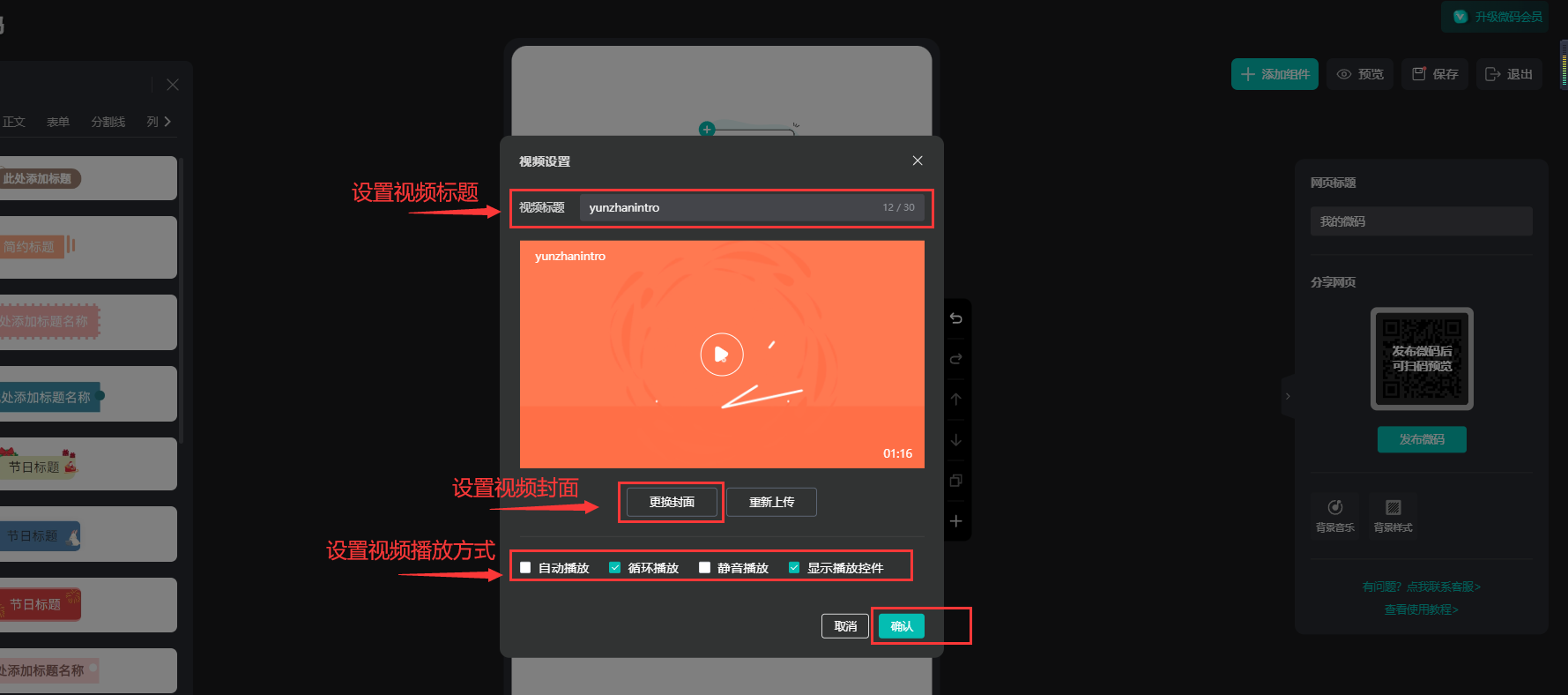 設(shè)置視頻標(biāo)題、封面和播放方式,設(shè)置好后點擊【確認(rèn)】