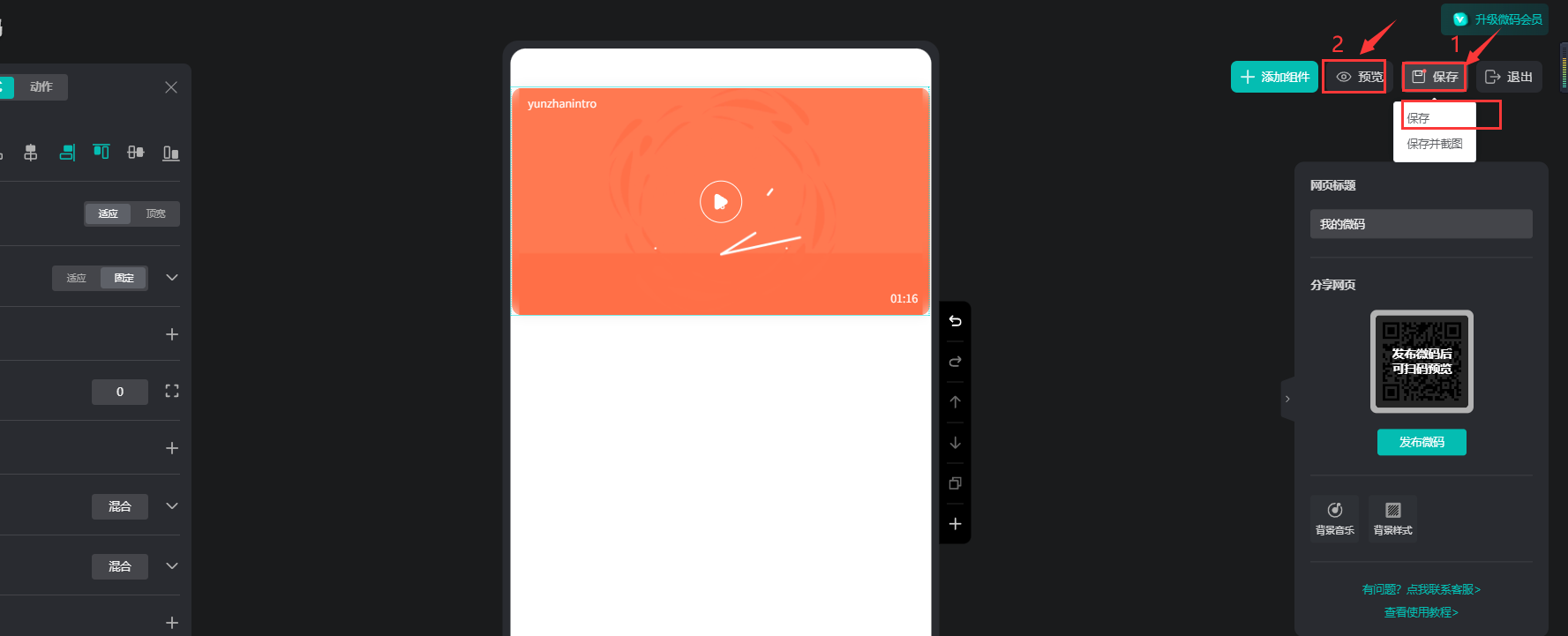 點擊【添加組件】,點擊【視頻】,上傳mp4格式的視頻