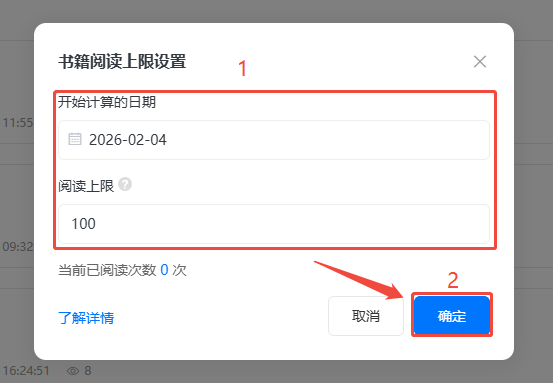 設(shè)置【開始計(jì)算的日期】以及【閱讀上限】后點(diǎn)擊確定。