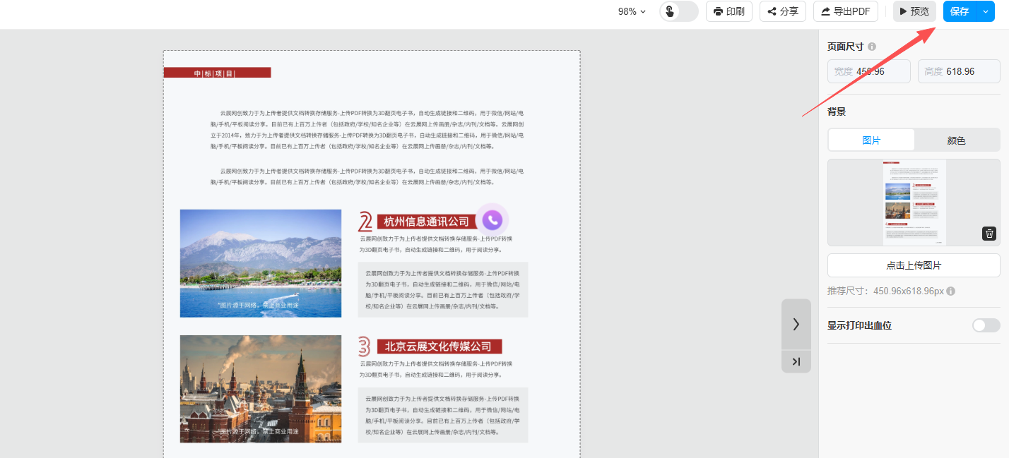 點(diǎn)擊頁面上的電話按鈕,在右邊界面屬性可以輸入希望讀者聯(lián)系的電話號(hào)碼。