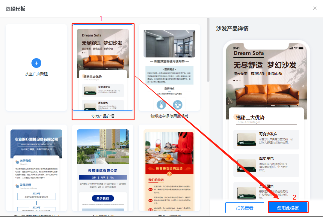 點擊選擇一個模板,點擊右下角【使用此模板】。