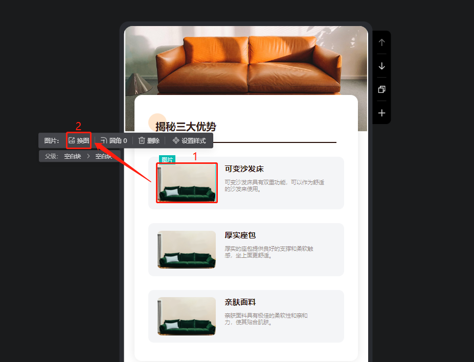 選中圖片,點擊【換圖】,即可更換自己的圖片。