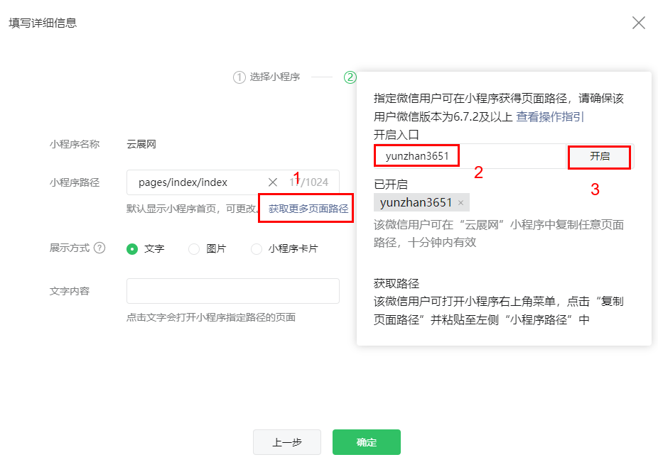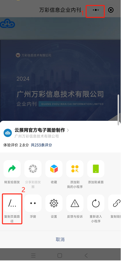 (4)手機(jī)微信打開小程序,復(fù)制頁面路徑