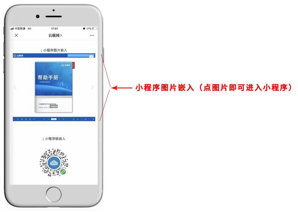 您可以把云展網(wǎng)生成的電子書/書櫥小程序分享到微信公眾號(hào)上,提高曝光率讓更多人看到,把電子書/書櫥小程序放到公眾號(hào)讓讀者閱讀,有三種展現(xiàn)形式。