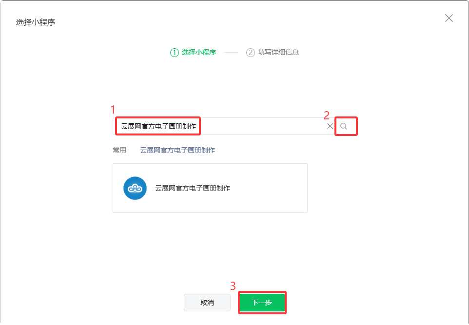 (2)輸入“云展網(wǎng)官方電子畫冊制作”進(jìn)行搜索